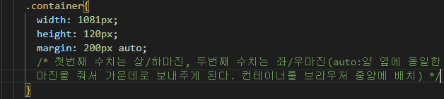 **margin 0 auto ←auto 좌우 동일한 여백을 주겠다는